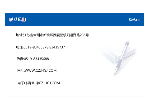 地址:常州市新北區友邦商務大廈1幢16、17層  電話:0519-85101652  傳真:0519-85112595  郵編:213022  網址:www.cz-jiayue_cn.gzyshs.com  郵箱:xiajifengaa@163.com